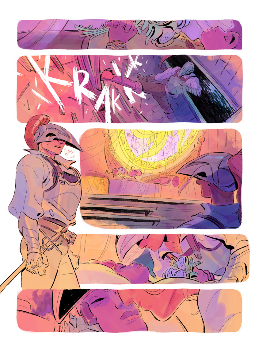 The below excerpt shows sample pages from the opening of the comic used in the pitch sent out to publishing houses and does not reflect the final work. Strange Bedfellows has since been picked up for publication by Harper Collins, due for a 2024 release.